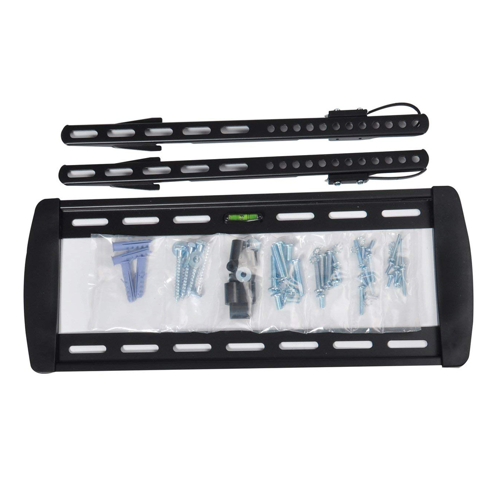 | Fits most 23-55″ TVs up to 132 LBS, with max VESA/mounting holes spacing of 800 x 600mm. Our mounts are tested 3 times loading weight claimed. Place your TV close to wall, 1.1 flush profile, saving space greatly with stylish appearance. Pulling straps lock and release TV breezily. Easy installation with decent instruction, one-piece wall plate design and bubble level. Included hardware is in pre-labeled bags Decorative side caps present elegant look from all angles |